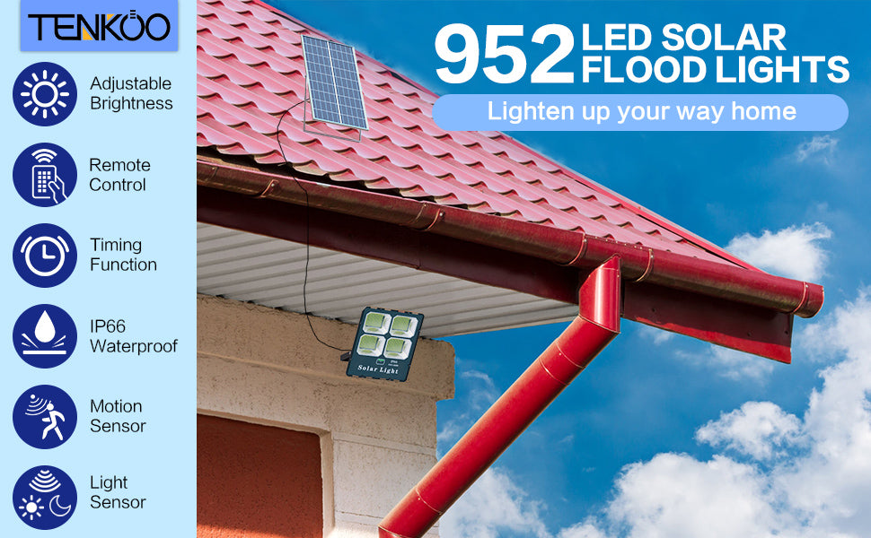 TENKOO Solar Flood Lights Dusk to Dawn 6000K
